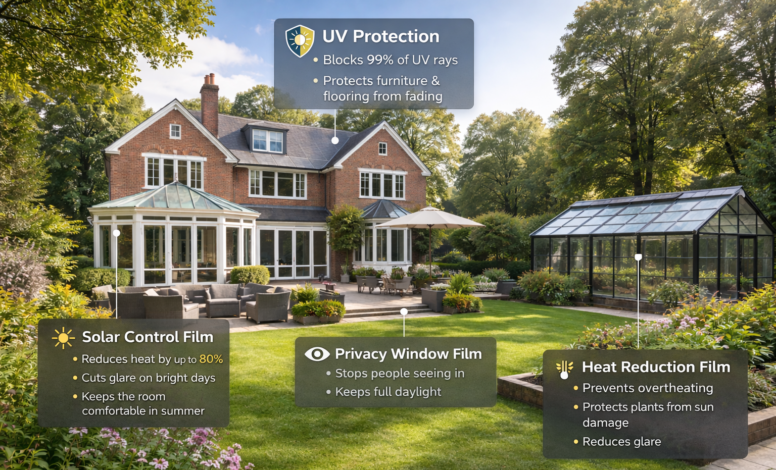 Solar control window films help reduce excessive heat and glare caused by direct sunlight. They are commonly installed in homes, offices and commercial buildings where large areas of glazing can cause uncomfortable indoor temperatures and screen glare. By limiting solar heat gain while still allowing natural light to pass through, these films create more comfortable environments and can also help reduce cooling demand during warmer months.